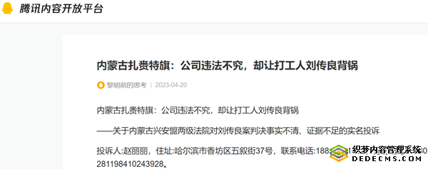 内蒙古扎赉特旗:公司违法不究,却让打工人刘传良背锅