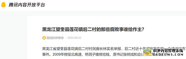 黑龙江省望奎县莲花镇后二村村民徼长林实名举报,后二村近十年间所发生的一个违法坑农事件。2009年修绥北高速,桥洞子维修给钱,原书记张树成和会计孙长军占为已有。