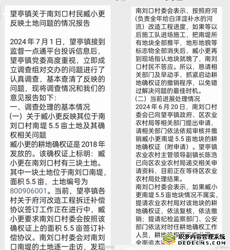 为了维护自己的正当权益,本人便开始在网上进行信访申诉。不多久,在上级部门过问下,望亭镇政府煞有介事地出台了一份《望亭镇关于南刘口村民臧小更反映土地问题的情况报告》。令人愤懑的是,这份报告始而贯终以南刘口村委会一面之词为口实,颠倒黑白、信口雌黄,对本人的正当诉求不屑一顾。南刘口村委会本身就是恶搞的始作俑者,而望亭镇政府还以其口实为凭,这不明显是沆瀣一气吗?