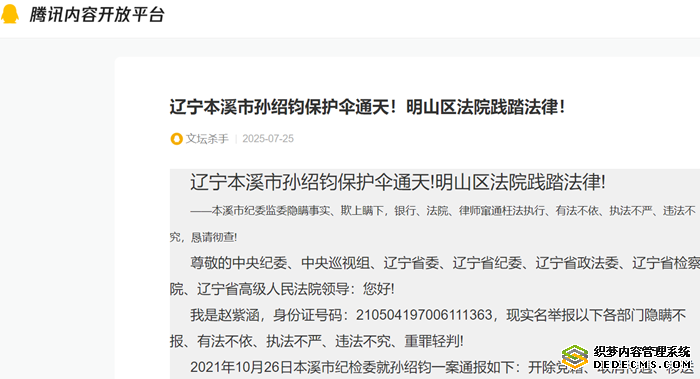 辽宁本溪市孙绍钧保护伞通天!明山区法院践踏法律!