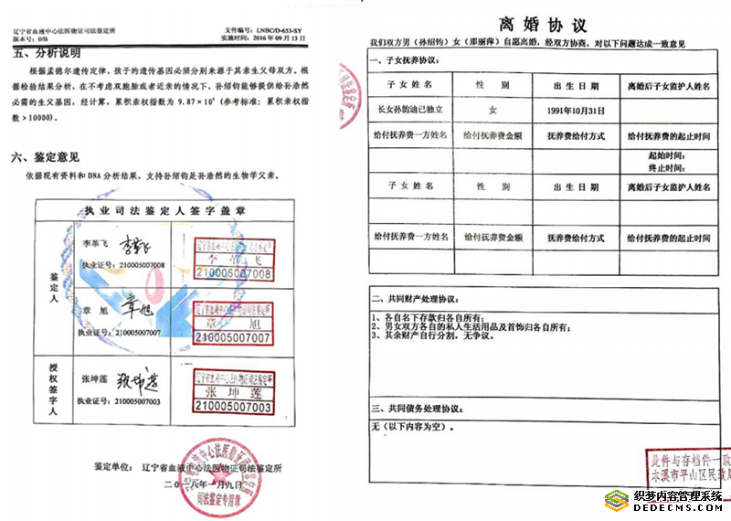 1、2010年7月29日,孙绍钧出示虚假离婚证并与举报人建立关系。2015年1月28日二人非婚生女孙浩然出生后,孙绍钧拒绝履行抚养义务(有拒收亲子鉴定材料凭证)。