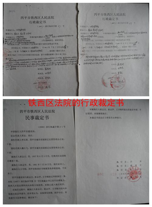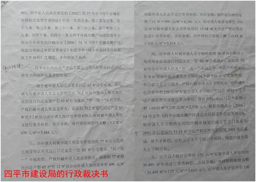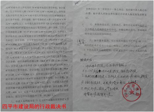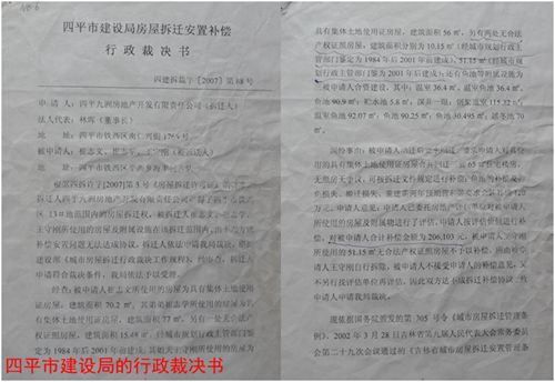 在 此期间,九洲公司单方委托四平市恒兴房地产评估公司对崔志文等三家的被拆迁物进行了评估。崔志文等三家证实:该评估公司并没有到实地进行调查核实,只是根 据九洲公司提供的一些数字和图片,就做出了《房屋拆迁评估报告书》。崔志文三人在不知情的情况下,看到了评估报告。他们认为该评估报告不真实,所采用的证 据是虚假的:一是王守刚的住房证上分明写出面积是56平方米,而评估报告中写出的却是无产权证房屋51.15平方米,不知评估公司从哪里弄来的这处房产加在王守刚名下;二是崔志文家大门是用铁板全封闭式的,而评估报告上注明的是铁栅栏式的大门;三是评估总值为20万元多一点,这个数字与九洲公司给出的一口价相吻合,与当地实际房价不相符。于是他们建议召开听证会,听取崔三人的辩解,对拆迁物进行重新评估。但是,四平市建设局没有接受崔三人的建议,遂于2007年9月7日做出了“四建拆裁字[2007]第88号行政裁决书”,裁决:“四平市恒兴房地产评估有限公司所出具的房屋拆迁报告书的估价结果合法有效;由四平市建设局对崔志文等三人所使用的住房本着拆一补一的方式进行住宅楼房回迁安置,原住房面积大于楼房面积的,按单价670元/平 方米进行补偿;本裁定送达后限在法定期限内,被拆迁人与拆迁人达成拆迁补偿协议,并搬迁腾出房屋,否则将申请铁西区人民法院强制执行”。值得一提的是,四 平市建设局并没有向崔志文等三人送达裁决书副本,九洲公司也没有与崔志文等三人签订补偿协议,四平市建设局就直接向四平市铁西区人民法院申请对崔三人进行 拆迁强制执行。铁西区法院根据市建设局的申请,于2007年9月28日和2008年1月23日分别做出了[2007]西行执审字第37号行政裁决书,准予对被执行人崔志文等三人的住房及合资兴建的观赏鱼池、附属设施强制执行。