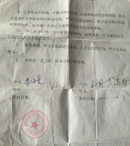 工作人员:但是合同上面盖得可是枣庄村民组的章。