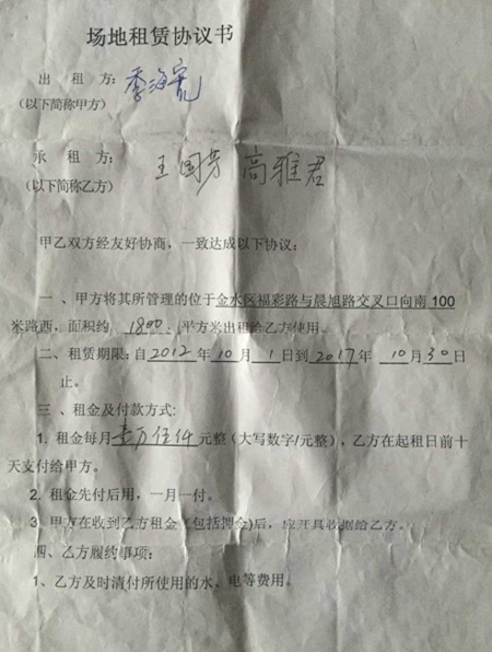 次日,本刊驱车前往河南省郑州市金水区枣庄村委会的辖区,同反映人一起来到位于晨旭路与福彩路交叉口向南100米路西的地点,远远就看见几家饭店以及修理厂夜市广场,都正在营业!