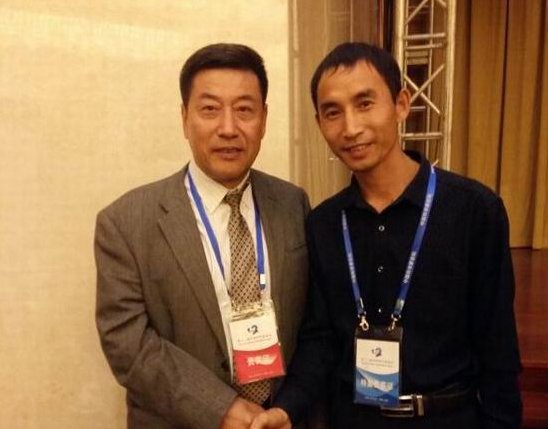 图为:张灏野博士与中国科学院韩布兴院士在科学家论坛会场