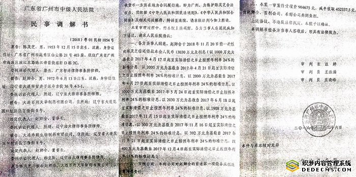 2018年11月26日,陈茂芝诉赵卿全等民间借贷纠纷一案在广州市中级法院开庭审理,陈茂芝和赵卿全均未出庭,而是由两名律师出庭。在庭上,双方均主动要求和解,广州市中级法院根据他们的和解内容作出了(2018)粤01民初1054号民事调解书。