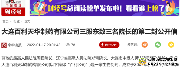2021年9月25日,我们向三位院长发出了第一封公开信,信中对大连市中级法院虚假破产大连市百利天华制药有限公司相关情况,但至今未得到回复。