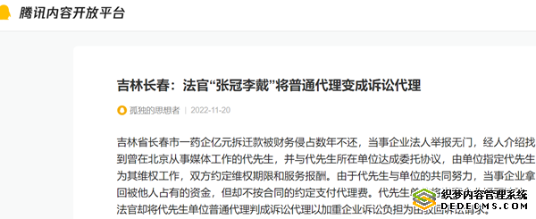 吉林省长春市一药企亿元拆迁款被财务侵占数年不还,当事企业法人举报无门,经人介绍找到曾在北京从事媒体工作的代先生,并与代先生所在单位达成委托协议,由单位指定代先生为其维权工作,双方约定维权期限和服务报酬。由于代先生与单位的共同努力,当事企业拿回被他人占有的资金,但却不按合同的约定支付代理费。代先生单位将当事企业诉至法院,法官却将代先生单位普通代理判成诉讼代理以加重企业诉讼负担为由驳回诉讼请求。