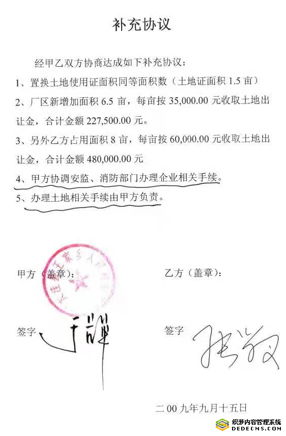 2009年签定协议,2010年入驻工业园区却因政府原因未能经营,这期间公司损失巨大,作为法人的辛亚飞不得不多次找王家乡政府、大洼县政府询问进度。