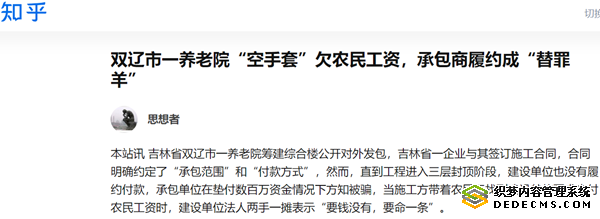 2022年10月23日,在双辽市政府的会议大厅,双辽市主管市长、公安局局长、人社局局长、信访局局长、劳动监察大队队长等数十人,分坐在圆形办公桌的一侧。另一侧坐着的是双辽洪涛养老院的人和宏城长春分公司的人,后进来的是几名农民工代表,他们看起来和洪涛养老院的刘院长很熟悉,见面了彼此点头递烟相互寒暄,对宏城长春分公司的人却满肚子火气。