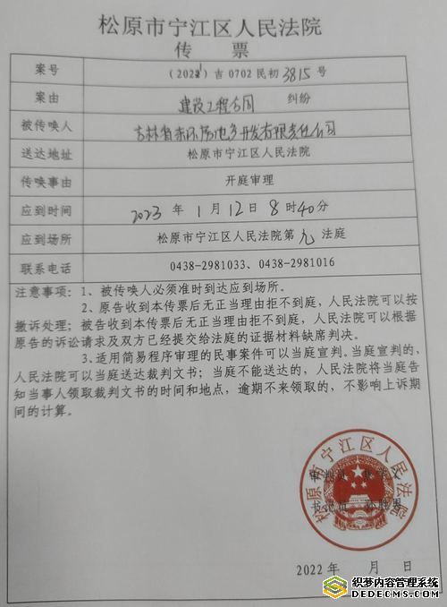 小年前两天接到的开庭传票
