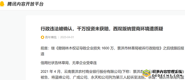 前言:继《撤销林木权证导致企业损失 1600 万,景洪市林草局被诉行政赔偿》之后续跟踪报道