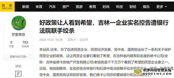 相关文章:一朝投资,余生维权,吉林省营商环境堪忧!