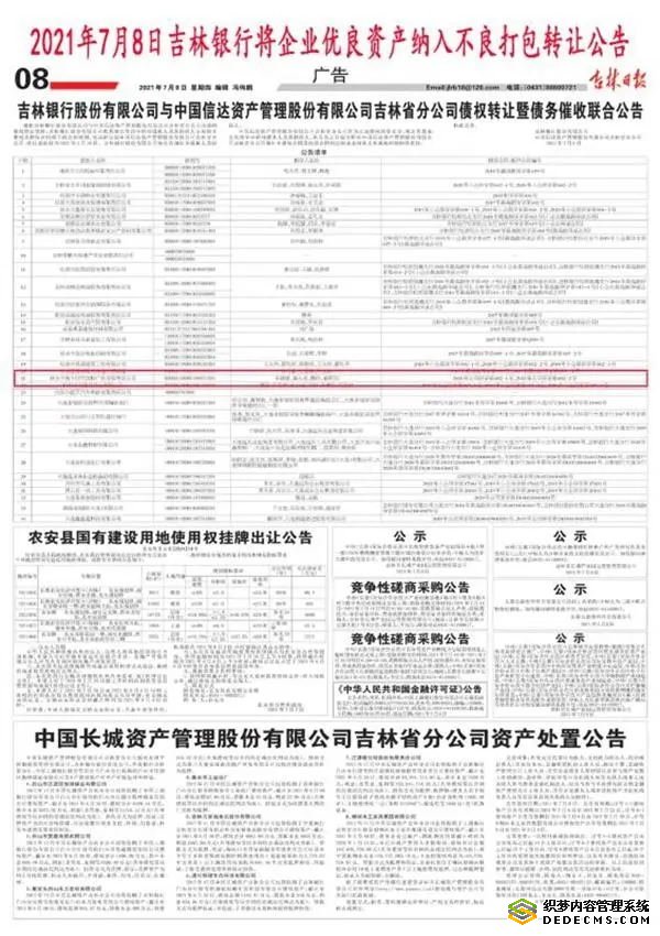 德卡公司称:根据中国人民银行《贷款分类指导原则》第三条,我公司贷款应列为关注而不应纳入不良资产。我公司向松原中院执行局打报告,要求给予协调,执行局不仅未给予协调还查封了我公司商业价值2亿的抵押资产。吉林银行在申请法院强制执行的同时,于2021年7月8日将企业优良资产纳入不良资产打包出售发布公告。吉林银行怎么能不宣而战的转让我们的资产呢?这不是明目张胆的趁火打劫吗?