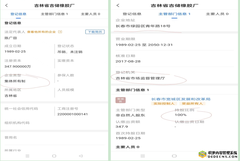 第五、刘影、宽城区发改局、省工商局(市监厅)审批办联合将吉储橡胶厂制造成“怪胎企业”、“野孩子”,使吉储橡胶厂登记注册在省市监厅,主管部门在宽城区,企业住所在绿园区,政府机关100%出资,所有制为集体企业,不伦不类。