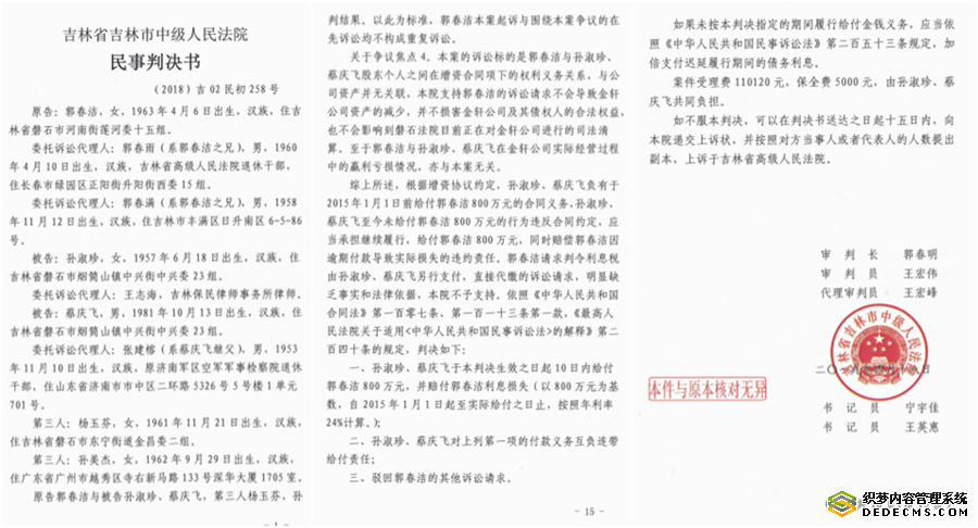 试想,如(2018)吉02民初258(本案)认定的事实真实存在,郭春洁的亲哥哥吉林省高级法院法官郭春雨不可能在提起(2017)吉0284民初3664号、(2017)吉0284民初3744号、2018)吉02民初37号民事案件均败诉后提起本案的诉讼,而应直接提起(2018)吉02民初258(本案)民事诉讼,没有必要在不断的试错后才提起本案诉讼。