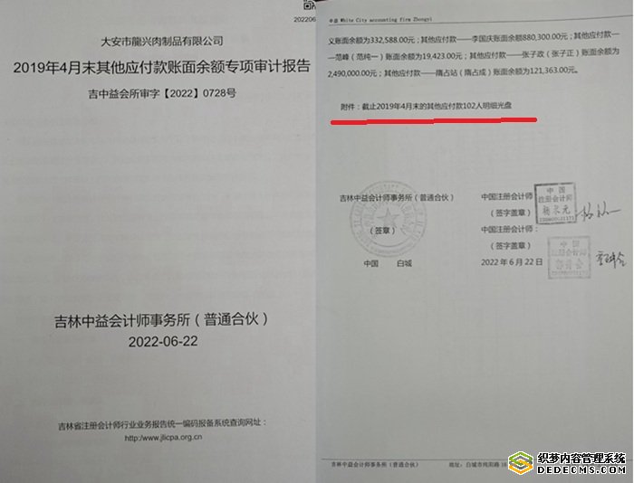 根据举报人提供的调解书显示,2017年6月,张埔铭(张文辰之子)以龙兴公司拖欠借款为由起诉,同年10月双方达成调解,法院确认龙兴公司欠付张埔铭本金530余万元及相应利息。“最奇怪的是,这笔所谓的‘借款’在公司财务账目中完全没有痕迹。”程文忠指出,他委托吉林中益会计师事务所对2019年股权转让前的账目进行审计,吉中益会所审字[2022]0728号报告明确记载:“未发现2015年公司欠张埔铭530.3487万元的事实。”