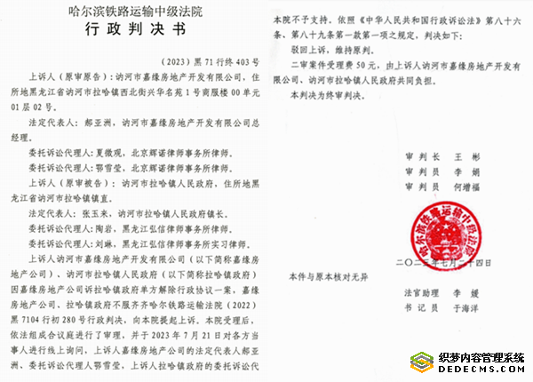 日前,嘉缘公司已向哈尔滨铁路中级法院提起上诉,并向纪检监察部门提交了关于一审法院疑似“枉法裁判”的举报材料。4月30日,哈尔滨铁路中级法院将开庭审理。而据郝亚洲介绍,由于拉哈镇政府不讲诚信并单方面违法违约,导致严重的后果,曾经在工地干活的农民工拿不到工资,给郝亚洲供料的拿不到材料款,郝已经被多人起诉,有的已经进入执行程序。本案的最终走向,不仅关乎一家企业的生存,更考验着基层治理能否真正步入法治化轨道。对此,媒体将继续关注。