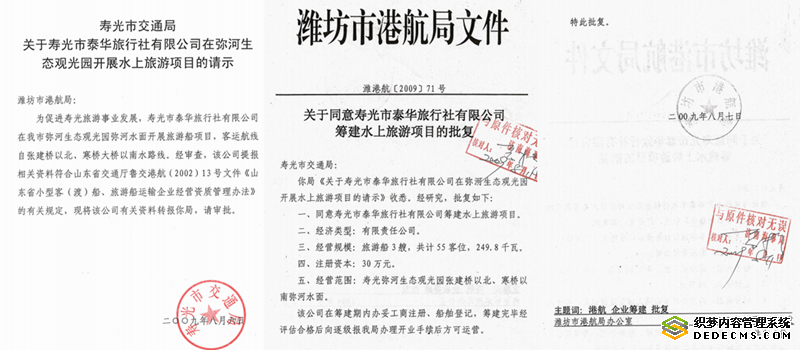 据常秀华介绍:2007年4月,寿光市委书记刘中会提出为了美化、亮化、净化环境,助力寿光创建百强市和文明城,决定让寿光市建设局局长韩文国负责成立“弥河管理处”,并由副局长王建文担任弥河管理处主任,徐园亭任弥河管理处副主任分管招商引资,招商引资办公室科员为宋晓明。 当时,身为寿光市泰华旅行社经理、在旅游行业成绩斐然的常秀华,被弥河管理处盯上了。管理处动员她承接旅游项目、农家乐项目。常秀华起初因担忧项目难以盈利以及河中无水影响游船经营并未同意,但宋晓明、徐园亭多次动员,并承诺河内保证水位船舶正常,配套安全办公场所设施齐全,还会设置8个游船高标准停靠码头,实现游、购、玩、吃、住一体化,承诺让她独家经营,承包年限长达20 - 30年。