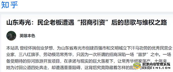 本站讯 曾经怀揣创业梦想、为山东省寿光市创建百强市和文明城立下汗马功劳的优秀民营企业家、三八红旗手、劳动模范常秀华,只因为一次所谓的招商深陷一场“噩梦”之中。一场备受期待的弥河旅游开发项目,在承诺与现实的巨大落差下,让常秀华倾家荡产。七年来,她为讨回公道四处奔走,却遭遇重重阻碍,这背后究竟隐藏着怎样的乱象与隐情?
