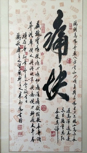 谢山河:对,你不承受它怎么办?这些人来了以后疼的,我说你就回去写这俩字儿去吧。我说古人啊,不是随便把俩字儿就给组合到一起了,它为什么不叫“快痛”,为什么叫“痛快”?你回去写写就懂了。有一位书法家,前列腺炎。“炎”是西医的说法,我叫关节硬化、前列腺硬化。因为前列腺硬化,把尿道锁死了,他这个海绵体不能伸张,不能开门儿了,就只能憋着,上医院导尿。西医也没有太好的方法,你说切它吧,又舍不得,不切吧,只能切。正要切的时候,也是葛优的经纪人告诉他,说你找一个人,试试,也许行也许不行。他来了,我就在这儿找到俩大疙瘩,就用两个砭石板子,咔咔挤,哎哟,疼的不行了了。我说你一定要忍住。挤一挤,啪,出去尿血去了。