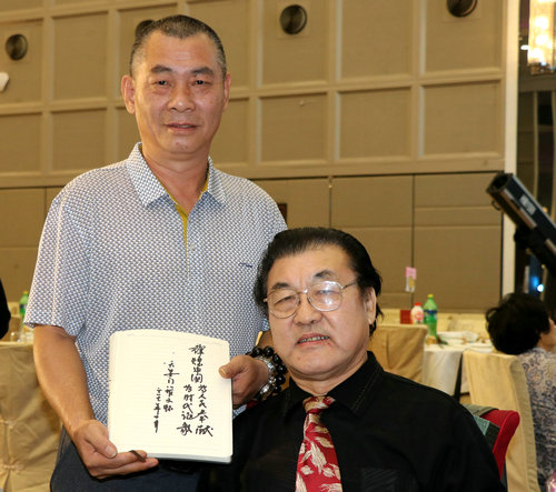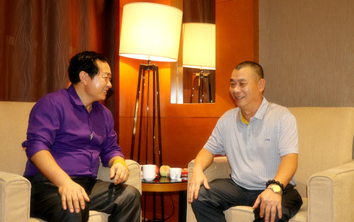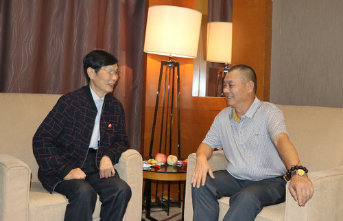 陈业庭与著名表演艺术家、西游记沙僧扮演者刘大刚在一起亲切交流
