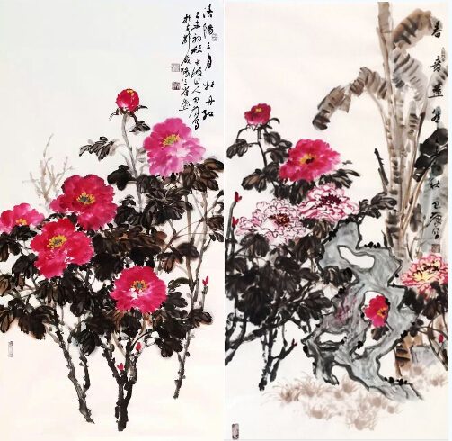 安先生擅长花鸟画的创作,牡丹、兰草、荷花、梅竹菊、葡萄等诸多题材均有所涉足,其功力匪浅,其中尤以画牡丹和兰草而闻名遐迩,在画界享有很高的声誉,也 因此有了“牡丹安”、“兰草王”的美誉。在他的作品中,最抓人眼球的就是他的牡丹和墨兰作品,牡丹和墨兰所体现的气韵与画作本身所传递和表达的艺术元素与 魅力巧妙结合,是安先生独有的艺术特色与魅力所在。他的水墨牡丹、彩色牡丹以及兰草画的造诣深得业界推崇,在当今艺坛享誉佳话。这一切来之于他自身的天 赋,更得益于他三十多年来的勤奋与努力。欣赏安先生的画,有一种艺术上的享受,一种唯美的感觉。自古就有“术业有专攻”一说,而安先生正是如此,他在绘画 方面所付出的辛苦与努力非常人所能比。安先生的牡丹,打破常规画法,运用水粉、水彩、水墨等手法,把牡丹的国色天香、卓约风姿以及其雍容华贵、富贵吉祥的 寓意通过他的妙笔表达了出来。其对画作的熏染着色,或深或浅、或浓或淡,调配自如,相得益彰。他画的牡丹,花硕色艳,形态各异、绚丽多姿。其水墨牡丹,着 墨或浓或淡,浓如重墨,淡如蝉翼;其多彩牡丹,更是千姿百态,千娇百媚,清新脱俗,高雅贵气,绚丽多姿,跃然纸上,给人一种“回眸望牡丹,千娇百媚生”的 惊羡。红牡丹艳而不俗,粉牡丹妩媚动人、白牡丹高雅素洁,黑牡丹冷艳高贵……每一幅作品都充满着一股大气,画中焕发的那种扑面而来的勃勃生机、积极昂然的 气韵,让人回味悠长,足见其艺术的功力和修养的深厚。
