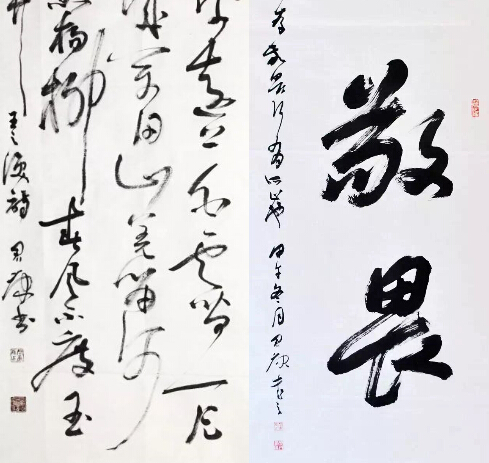 多年的勤学苦练造就与锤炼了他扎实的书法功底和娴熟的笔墨技巧,加之浓厚的文学素养,更使得他的作品达到一种炉火纯青、出神入化的地步。安先生的书法擅长 行草,其书法作品苍劲有力、飘逸洒脱。经常在微信里看到他上传的练就书法作品的小视频,他以画法入书法,顿挫转折、轻重缓急、大小疏密、干湿浓淡,挥洒自 如,得心应手。难怪香港老画家黄子澹比喻他的字“若百年枯藤、若千年老树;若云雾腾飞,若日月行空”。河北评论家赵福祥题赞:“风神绰约,笔意纵横”。看 安先生写字,如观行云,快意乐然。无论是盈尺小品,还是巨制长卷,他都一气呵成。一手夹烟,一手执笔,瞬间满纸云烟,如浮云端赏奇景。线条婉转处似春柳拂 水,飘逸俊秀;波折处犹如铁画银钩,力透纸背;时而浓墨如泼,时而枯笔游丝,张扬着一种勃勃生机和强烈的节奏感、韵律美。