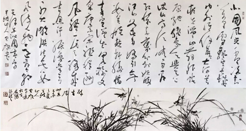 安先生的墨兰更是简单几笔便勾勒完成,其兰草作品栩栩如生,一枝一叶尽显灵动与飘逸,画出了兰的素雅与幽香、兰的高洁与淳朴,兰的清幽与淡泊……他以狂草 画兰,把每一条线条都赋予它们以生命与个性,或迎狂飙而飞扬,或临雨濯而不屈,或沐春风而怡然,这种洒脱与飘逸的画风很像安先生的为人──孤傲清丽,狂狷 不羁。在构图上,他常常采用出其不意的表达手法,笔调劲力而舒卷,清爽而秀雅。两株春兰,丛生草地,鲜花盛开,引来蝶舞。他以兰铭志,以兰寄情,把兰的气 节与品格体现得淋漓尽致。每次欣赏安先生的作品,对我来说都是一种极美的享受,他的每幅画作都震撼着我的心灵,吸引着我的眼光,让我不断发出惊喜与赞叹。 安先生的书画艺术造诣水平早已享誉三秦,声名远播西北,如今在海内外的声名渐已鹊起,他艺术的魅力,在不断地感染着业界、吸引着对艺术崇尚和热爱的人们。 我有幸加了安先生的QQ,在QQ空间里几乎天天可以欣赏到他最新的佳作,每幅作品都给人以耳目一新、推陈出新的感觉,给我很强的视觉冲击力,让我深深为之 震撼,也深感他的努力与奋进。欣赏他的作品犹如品一杯清幽的香茗、一杯浓烈的美酒、一杯香浓的拿铁或摩卡咖啡,让人在兴奋与赞叹之余,翱翔在唯美的境界里 而不能自拔……