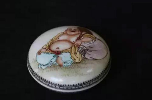阮先生在内蒙古考察期间,我们不仅一起走访藏家,逛古玩店,也光顾当地的古玩地摊。有一次在市场上偶遇一南方人摆摊,卖的都是瓷器。当地人对他的东西非常冷落,几乎无人问津。当被我们看到后,阮先生的眼睛立刻亮了起来,且神情异常的激动。他指着摊上的瓷器对我说,“这些都是真东西,如果价格合适,一定要把它买下来”。经过讨价还价,我从这个人手里买下了一对粉彩花卉帽筒和一只粉彩龙纹笔洗(见图9)。后来还与这个人交了朋友,来年又在阮老师的指导下,有从他手里买过几件瓷器。如清代青花开光花卉方棒槌瓶、民国陶陶斋款的粉彩印泥盒(见图10)和一件清代粉彩椎把瓶(见图11),从而为我的古瓷器收藏打下了一定的基础。