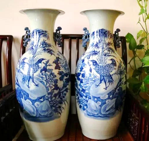 有一次我去一个小县城办事,顺便走进该县城唯一的一家古玩店,看到了一对自己感觉不错的青花大瓶,该瓶器型规整,青花发色沉稳,画工流畅。但还是不能做出最后的决断,拿不定主意是买还是不买。情急之中给阮先生发图片请教,他看后告诉我,东西是对的,只要价格合适,应该把它拿下。正是在阮先生的定夺下,我把这对青花大瓶收入囊中(见图12)。以这种方式与阮先生的隔空交流,一方面,收藏到了自己喜欢的藏品;另一方面,避免了打眼造成经济上的损失。同时,正是通过这种方式,大大的提高了我对古瓷器的认知能力。