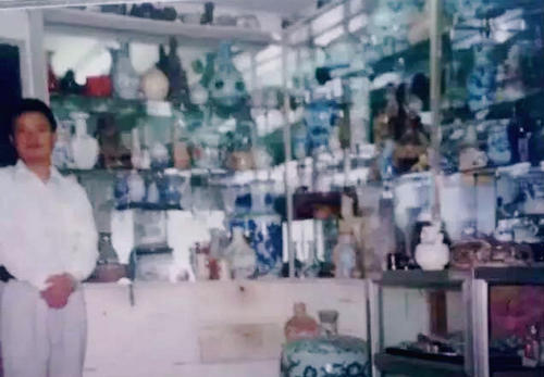 阮先生是江西抚州人,打小就喜欢是古瓷器,不到二十岁就踏上了古瓷器的收藏之路。在改革开放的初期,他南下广州等地发展,1984年就在广州开了一家古陶瓷店。(见图3)阮先生正是在广州的摸爬滚打,苦战实战,访友拜师,练就了鉴赏古瓷器的一双火眼金睛。上个世纪90年代初,他移居到北京发展,在京城开了一间名叫“锋古堂”的古瓷器鉴赏工作室。阮先生的工作室古朴典雅,展柜里各种古瓷器琳琅满目,中高档藏品样样具备,且摆放的错落有致,让人赏心悦目。值得一提的是,在他的工作室根本找不到一件赝品,转让出去的古瓷器实行三包,即包老、包真、包退。老客户越来越多,结交的朋友越来越广,在北京城的名气越来越大。