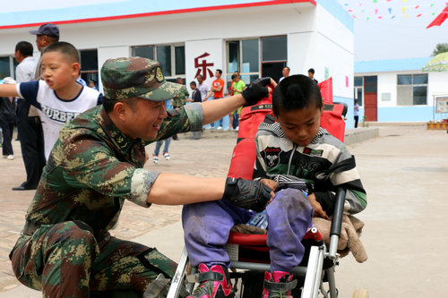 歌唱家金波看望残障儿童时拍摄