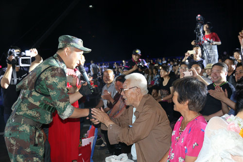歌唱家金波在乡村慰问演出时拍摄