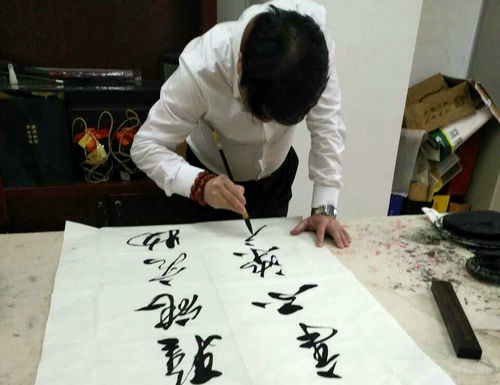 张云飞创作书法时拍摄