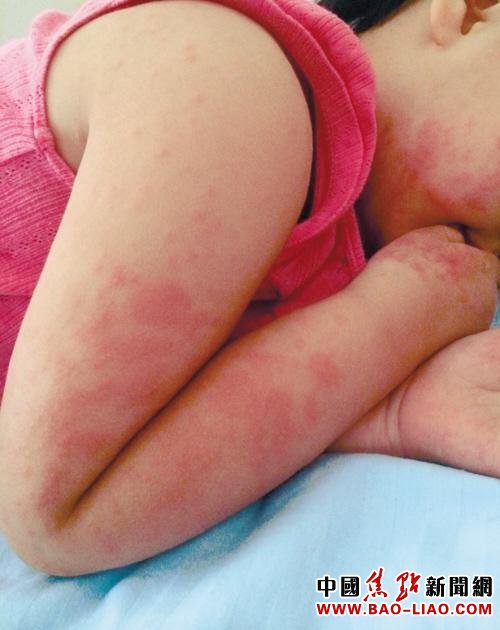 先是胳膊,后来腿,前胸后背,最后到全身上下……望着宝宝身上密密麻麻肿起的红疹子,沈阳的唐女士近日来愁容不展。“疹子痒得厉害,孩子常常把我的手搭到身上,然后使劲抠,有的地方抠破皮,会淌血。”唐女士无比心疼,但最令她不安又不解的是,自己喂养宝宝一直很精细,孩子顿顿吃肉,不可能缺营养,怎么会患上这么重的疹子?