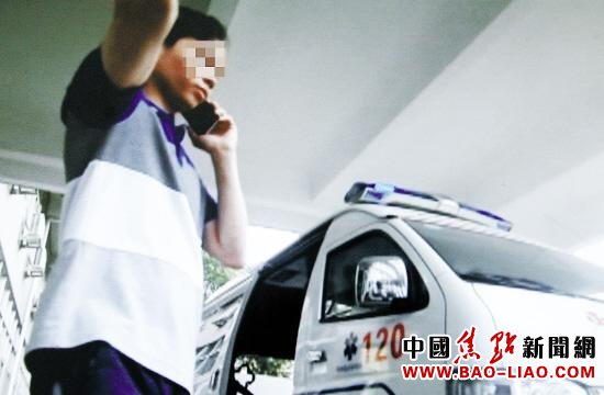 第五人民医院一男子帮忙联系“救护车”(隐蔽拍摄)