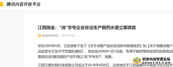 北京某律师认为,江西省瑞金市消毒产品企业利用“消”字号进行生产、销售护眼、养眼药水,说明书明显注明疗效,且未经卫生安全评价并备案,随意使用商标,又利用市场监管红线,注册多家生产和销售公司进行“身份”转换,躲避市场监管,规避追责风险。当地监管部门为了营商环境,一般惯例是采取低档位行政处罚。对于低档位处罚,涉事企业对违法成本几乎可以忽略不计。