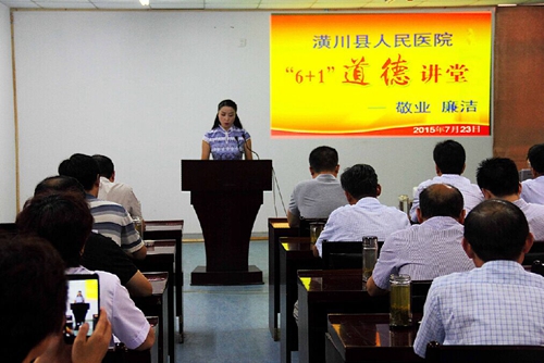 本站讯 道德讲堂建设是今年潢川县文明创建工作的一项重要内容和有力载体,为深入开展文明创建工作,加强职工思想道德建设,进一步提高全员文化道德素养。按照县文 明办“关于加强道德讲堂建设的意见”精神,近日,河南潢川县人民医院道德讲堂开讲,医院院领导、中层干部、共青妇负责人和不值班的工作人员聆听了此次讲 堂,一同感受道德的花香,感受仁者之心、敬业之心的道德洗礼。