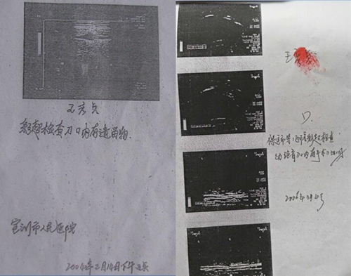 我拿着回复函找他们,他们这才大吃一惊,不得不开具彩超检查证明,安国市医院和定州市医院彩超结果一样:发现手术刀口有遗留物,属于重大医疗事故,这是对一起绝育手术定性的关键和焦点。这样一来,安国计生委服务站,要承担法律责任和巨额赔偿责任。
