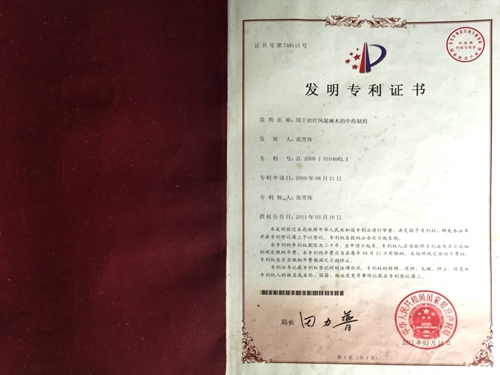 风湿秘方专利证书