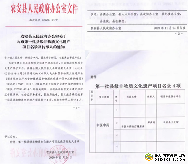 2020年11月24日,吉林农安仁济医院院长郝彦瑞中医药治疗糖尿病成为第一批县级非物质文化传承人。