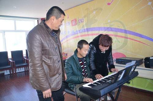 图片3为该场职工们利用冬闲时间在生产队的文化活动室内学习电子琴。