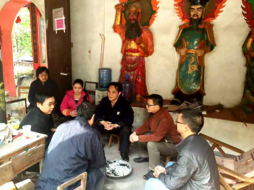 在调研期间,在地方宗教部门领导的陪同下,陈应伟道长到古风岩规划园景区考察,并参访了北帝庙,三界庙、龙母庙、东岳庙等道教宫观遗址,还在北帝庙虔诚上香,为覃塘区广大民众祈福!同时,进一步深入了解有关北帝庙道教的历史文化及有关情况,并与北帝庙负责人谭全锋及道教信众代表、社会人士等进行文化交流。座谈中,分别听取了覃塘区民族宗教局局长周克索对覃塘区道教历史文化、民间信仰等情况;樟木乡长对规划景区的总体规划发展的相关事项。