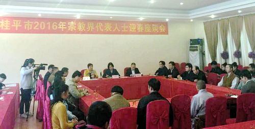 中国周易新闻网讯:2016年1月6日,“桂平市2016年宗教界代表人士迎春座谈会”在桂平饭店举行。