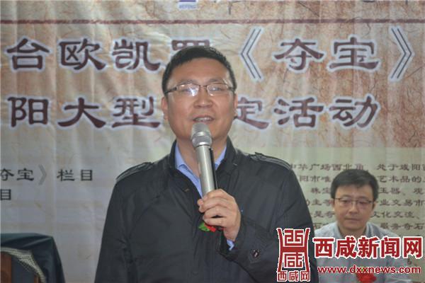陕西广播电视台欧凯罗《夺宝》节目制片人夏军向广大收藏爱好者和广大市民朋友详细介绍“欧凯罗《夺宝》”栏目情况,他说:欧凯罗《夺宝》栏目是陕西三套生活频道与西安欧凯罗文化创意有限公司倾力打造的一档鉴定拍卖服务类节目,栏目内容除了邀请权威专家鉴定藏品真伪,讲解文化内涵之外,每个月还会组织一场拍卖会,其目的就是为商家和收藏者提供双向交流的高层次平台。最后他说,这次《夺宝》栏目走进咸阳鉴宝全称免费,凡是今天通过专家鉴定的宝物,都可以参加欧凯罗《夺宝》节目的录制,并且可以参加我们节目组织的每月一场的拍卖会,在这里要跟大家说明的是无论您来上电视节目还是参加拍卖会,整个过程都是全程免费的。