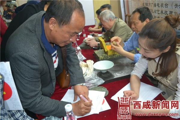鉴定团专家常斌老师认真细致的为收藏爱好者鉴定“宝贝”并交流