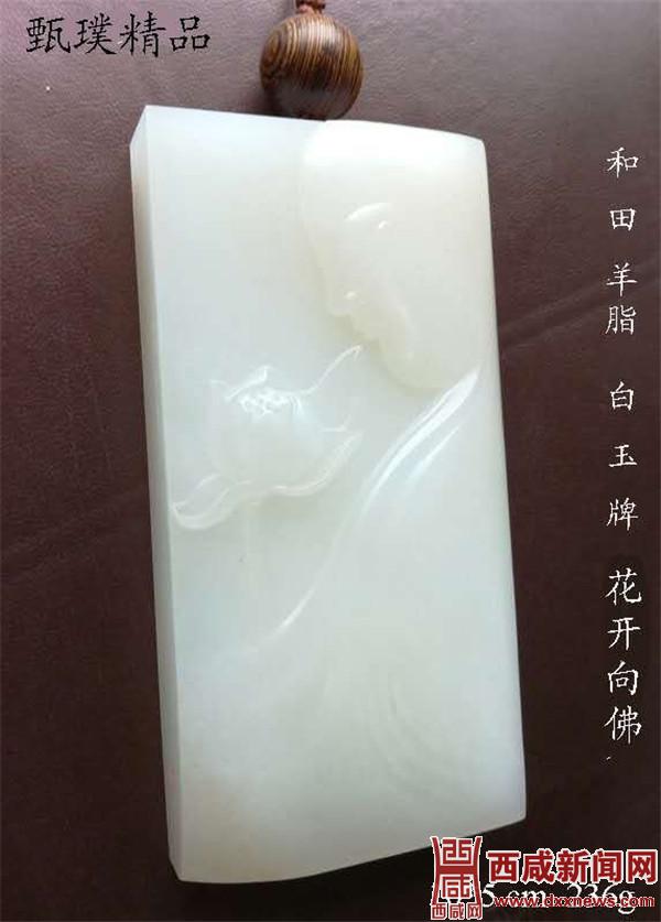 当天的鉴宝现场,来自咸阳的藏家段亚玲夫妇收藏的两件藏品,受到了陕西省文化艺术品司法鉴定中心鉴定委员、中国宝玉石协会教育专业委员会委员王珰荣老师的高度评价。她说这两块藏品是她近十年来首次在陕西收藏界见到品质极高的和田玉,其中一件藏品为和田玉中的山料,雕刻有“开花见佛”的工艺,这块玉不管是从油润度到光泽度,从颜色到结构,从重量到形状……都可谓是田玉中的极品,而另一件藏品为是和田玉籽料,质地细腻、油润,皮色优质,是和田玉中极品中的极品,虽然他没有雕刻工艺,但它的收藏价值远远超过他本身价值的几倍,是陕西目前收藏市场上难得一见的玉界臻品。