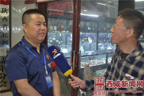 陕西民间艺术收藏协会咸阳分会会长程根强接受记者采访