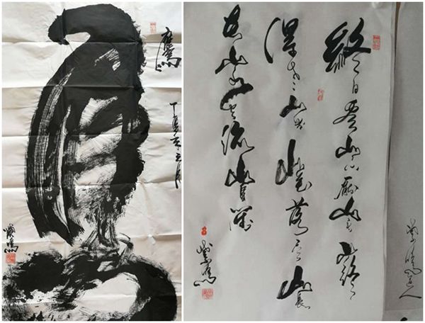 紫鸣道人讲完,便将几幅近期作品展示给大家,并请求指导。当在场的书画界名家,看过紫鸣道人的作品后,异口同声地说:“字中有画、形神兼备、秒笔生辉、活灵活现、栩栩如生,已达独到境界。”